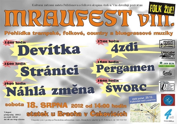 Tentokrát Mraufest pořádáme jako součást projektu FOLK ŽIJE - projektu na podporu muziky Folk, BG, Country a blízkého žánru...