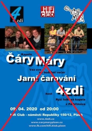 Koncert na pozvání Plzeňské kapely Čáry Máry, Hifi klub - Plzeň, od 20 hodin