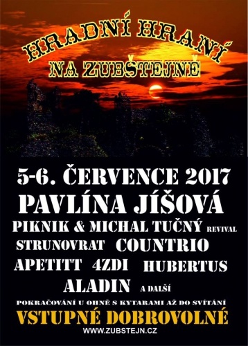 Koncert na festivalu Hradní hraní na Zubštejně u Bystřice nad Pernštejnem, zač. 16hod.