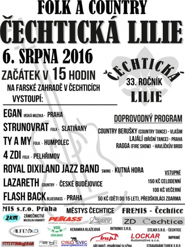 Folkový festival Čechtická lilie - 33. ročník, Čechtice, na faře, zač. ve 15hod.