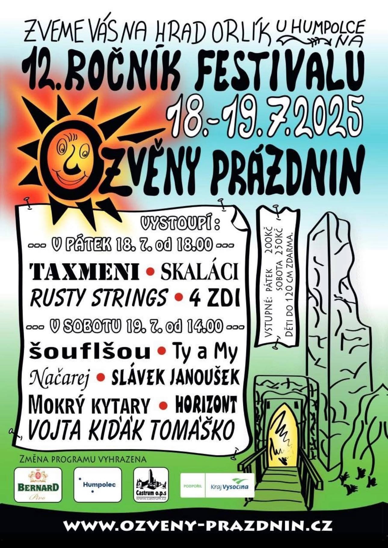 Koncert na festivalu v nádherném prostředí zříceniny hradu Orlík nad Humpolcem. Začínáme od 19 hodin
