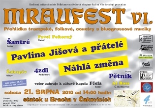 ...Nevím co bych k letošnímu, již šestému ročníku Mraufestu napsal. Je dobré, že počasí přálo, že přišlo hodně lidí, kapely se dostavily do jedné včas. Že se nestalo nic nepředvídatelného a to ani na samém konci, kdy bývá k mimořádným událostem jen krůček. Je dobré, že náš festiválek na pokraji Vysočiny postupně roste a sílí a rád bych věřil, že i my budeme mít dost sil ho nadále organizovat. Děkuju všem, kteří přijeli poslouchat i hrát a kteří se jakkoliv přičinili o příjemné odpoledne. Díky hlavně Brachovi za ochotu sdílet svůj romantický kout s námi ostatními....Díky, díky...zase za rok!