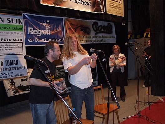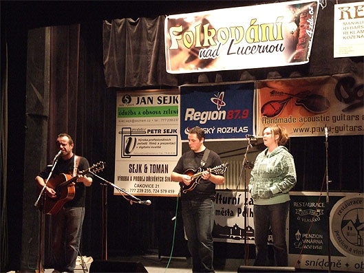 Čekali jsme v šatně, až na nás přijde řada, pozván byl totiž ještě Jirka Řehulka, což je příjemný písničkář z Dobříše, který Folkování nad Lucernou zahajoval. Když už malinko přicházela nervozitka, tak jsme při vstupu na podium zjistili, že není čehož se obávat, protože sálek byl útulný, zvukař pohotový, publikum vstřícné. Koncert proběhl v pohodové atmosféře, ale to by měli už vlastně posuzovat především naši hostitelé a diváctvo.