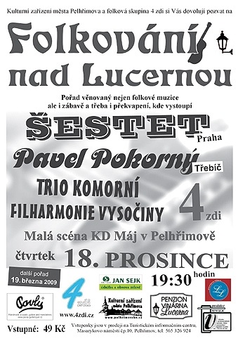 Co dodat? Vylosovaní výherci opět nešli domů s prázdnou a počet návštěvníků nám jasně potvrdil, že podobné večery mají v Pelhřimově smysl. Tedy hurá do Folkování roku 2009…Fotil Hynek...